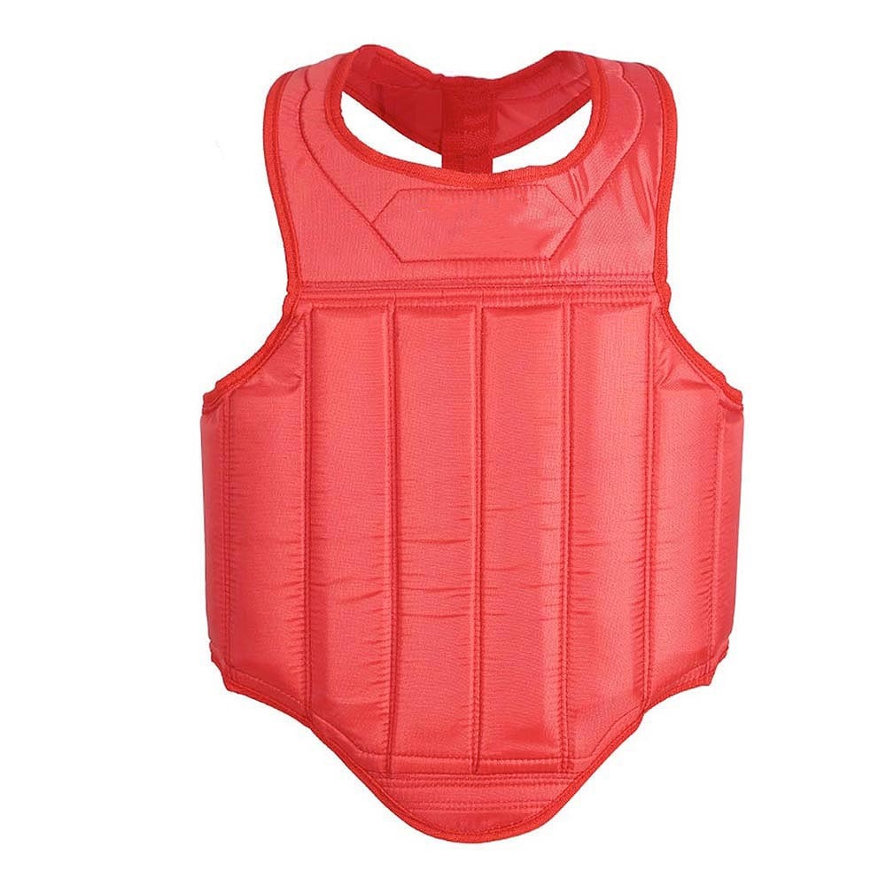 Lace up closure at the back of the chest guard with a high abdomen protection in order not to inhibit your kicking abilities. Red on one side, Blue on the other, just reverse the guard to switch colours.